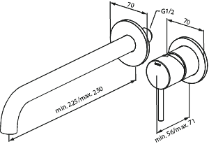 Zestaw elementów 250 mm zewnętrznych z wylewką podtynkowej baterii umywalkowej polerowany mosiądz